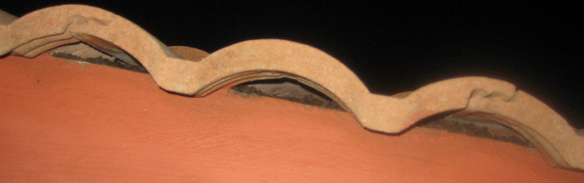 What makes a barrel tile roof so attractive also makes it very difficult to remove bats from. The many ridges of a barrel tile roof look nice, but each tile has gaps under it that bats can squeeze through. Clay tiles are warm and dark, and they make a great place for bats to roost. Bats also prefer entering and exiting through vertical gaps rather than horizontal ones, such as the opening of a chimney. If there is a tear in the tarpaper below the tiles, then the bats can easily take up residence in the attic as well. Because each piece of tile has ridges the bats can enter through, it is very difficult to remove bats from and then seal a barrel tile roof because there are hundreds of entry points.